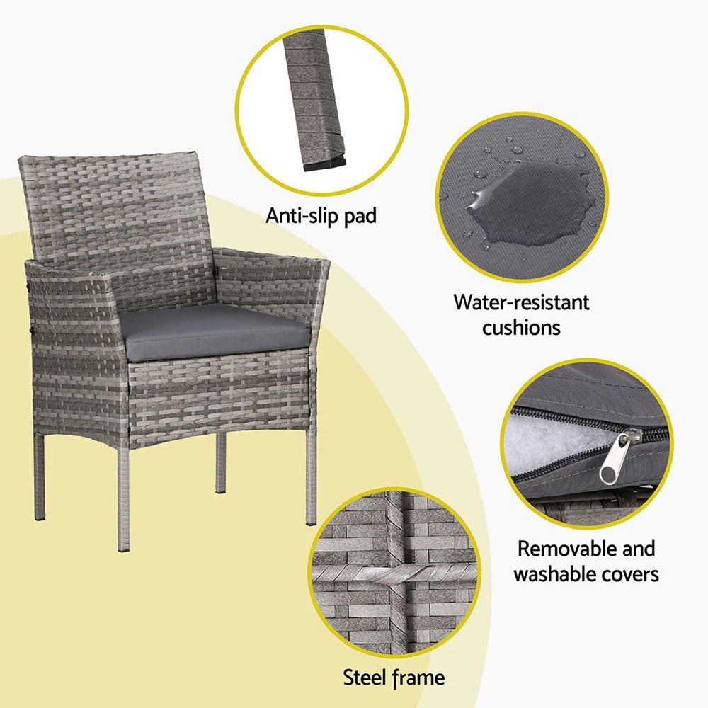 Leisure come easy with our Gardeon Outdoor Furniture Set. Crafted with UV-resistant PE wicker and a heavy-duty steel frame, this set is built to last in any weather conditions. The matching side table features a wicker border finish and a 5mm thick tempered glass top secured with suction pads for added style and durability. Enjoy maximum comfort with the high-density cotton cushions, which come with removable and washable cushion covers for easy maintenance. Suitable for both indoor and outdoor use, this sofa set is designed for convenience with easy assembly. Upgrade your patio or garden with the Gardeon Outdoor Sofa Set today!