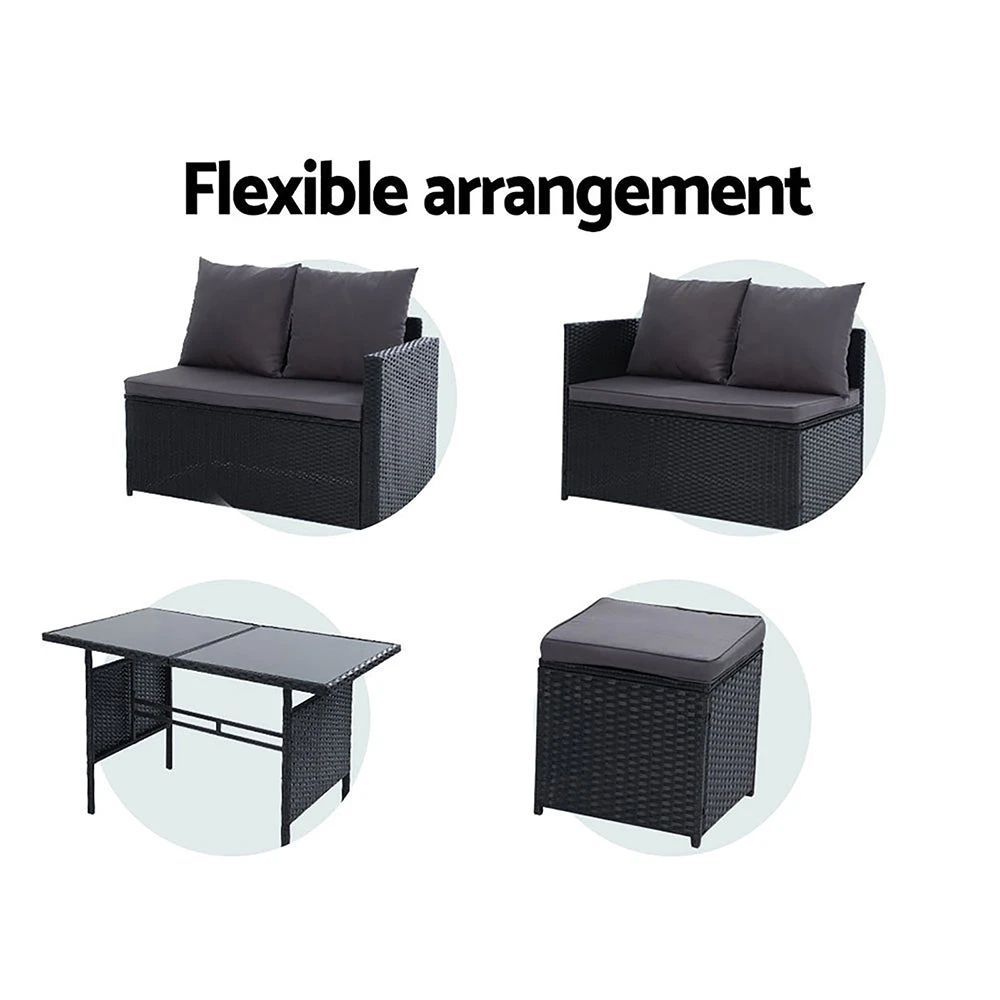 Invite your friends and family over for a garden party or just sit back and relax with our Outdoor Sofa Dining Set. Being a 9-seater, the dining set provides enough room for all your guests to sit or for you to have a lie down and enjoy a book.