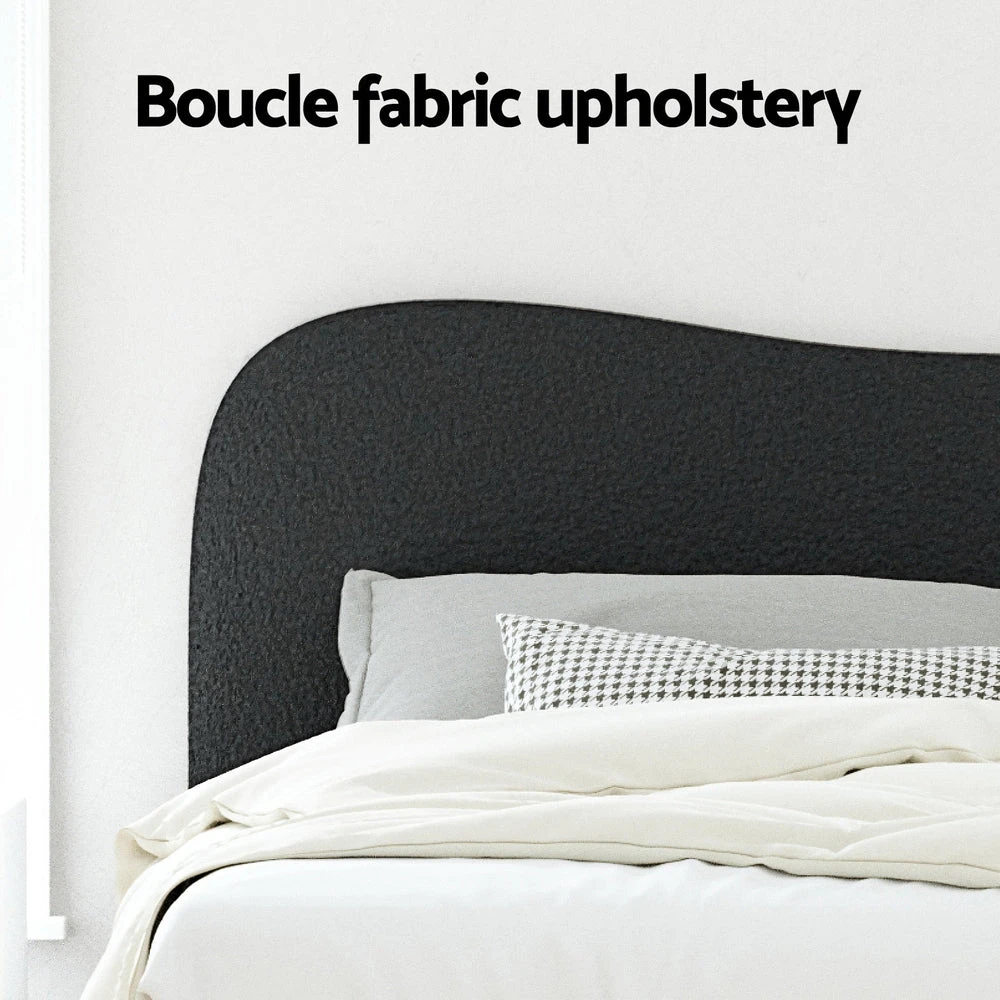 With its sophisticated black bouclé upholstery, this bed frame brings a statement of timeless luxury to any bedroom.