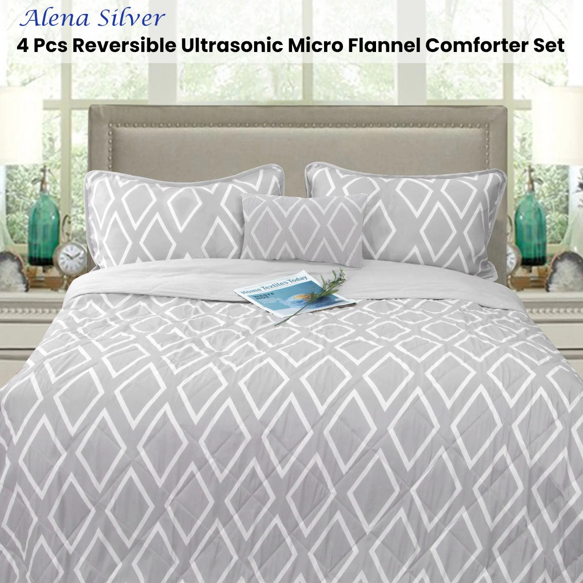 Bring a new touch to your bedroom decor with this Alena Silver 4 Pcs Reversible Ultrasonic Micro Flannel Comforter Set by Ramesses. Made from soft, durable, and shrinkage-free microfiber yarns in silver and white hues. Serve yourself with better sleep every single night and wake up each morning with this Premium Hotel Collection Comforter Set. Premium design with high quality craftsmanship ensures the added comfort and super soft feel giving you the best sleep experience.