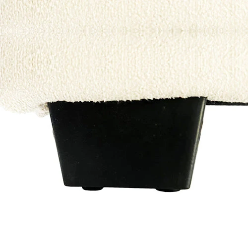 - Material: Linen fabric, MDF drawers, plywood slats, plastic legs