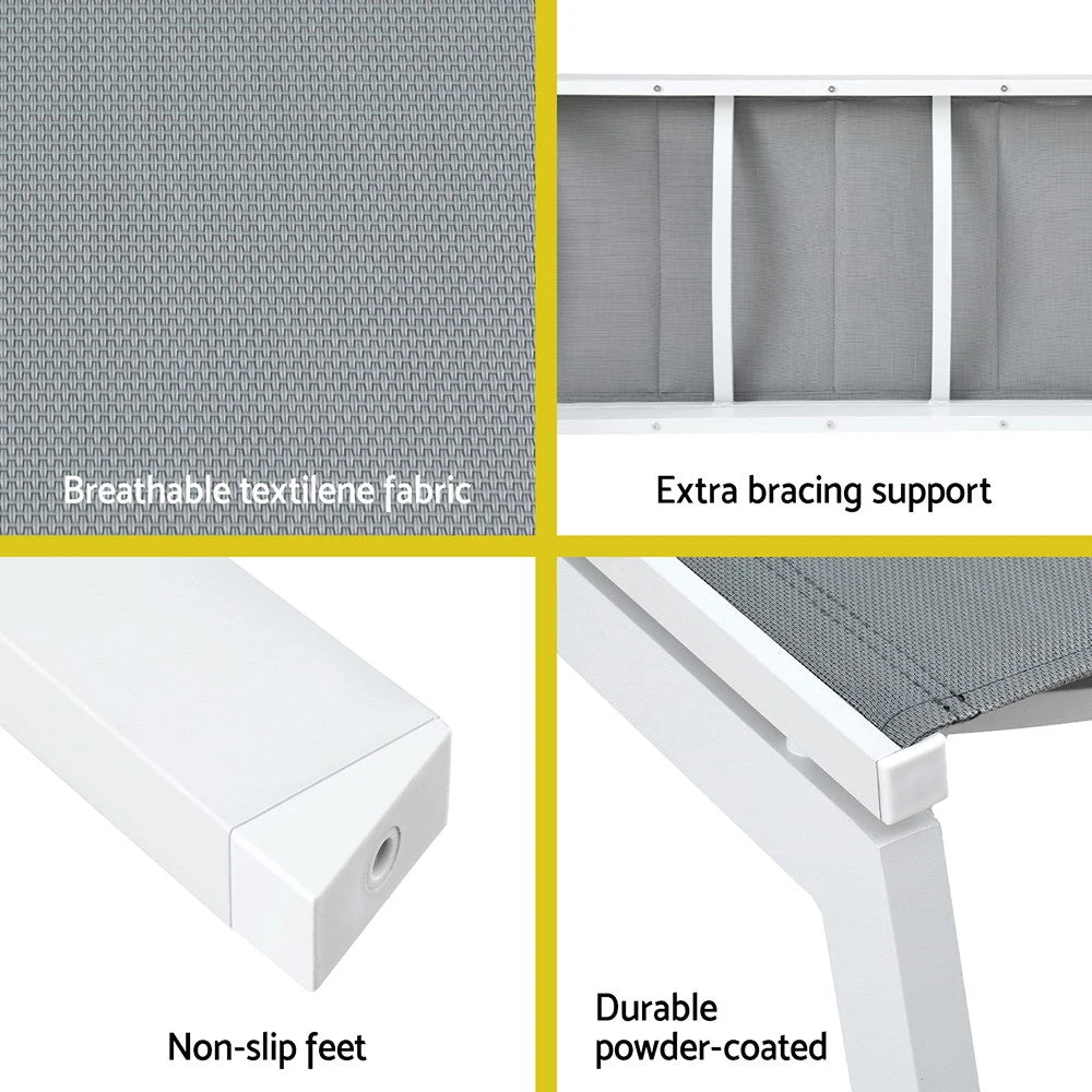 Make the most of every sunny day with our Aluminium Sun Lounger with Wheels. Designed for both style and durability, this lounger combines a breathable textilene fabric with a robust powder-coated aluminium frame, providing weather and corrosion resistance. Whether you’re lounging poolside, at the beach, or in your backyard, this versatile piece offers comfort with its 5 adjustable backrest settings, allowing you to find the perfect position to relax. Equipped with smooth wheels for easy mobility, you can easily chase the sun or find the perfect shade. With a 150kg weight capacity and simple assembly, this sun lounger is a must-have for all your relaxation needs.