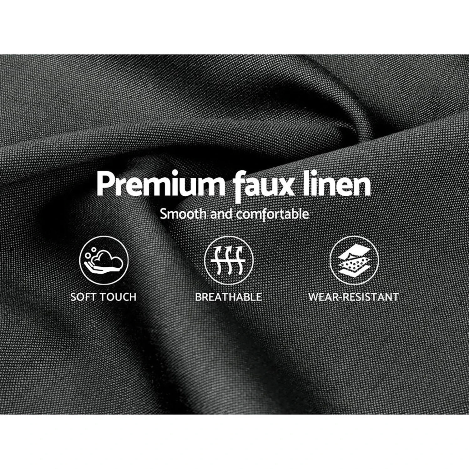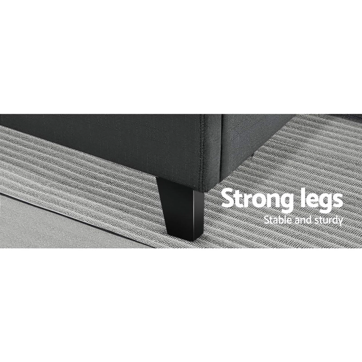 With its exquisite modern lines, elegant finish and quality faux linen fabric upholstery, the bed frame is well-crafted with solid wooden slats that help distribute body weight evenly throughout the ensemble.