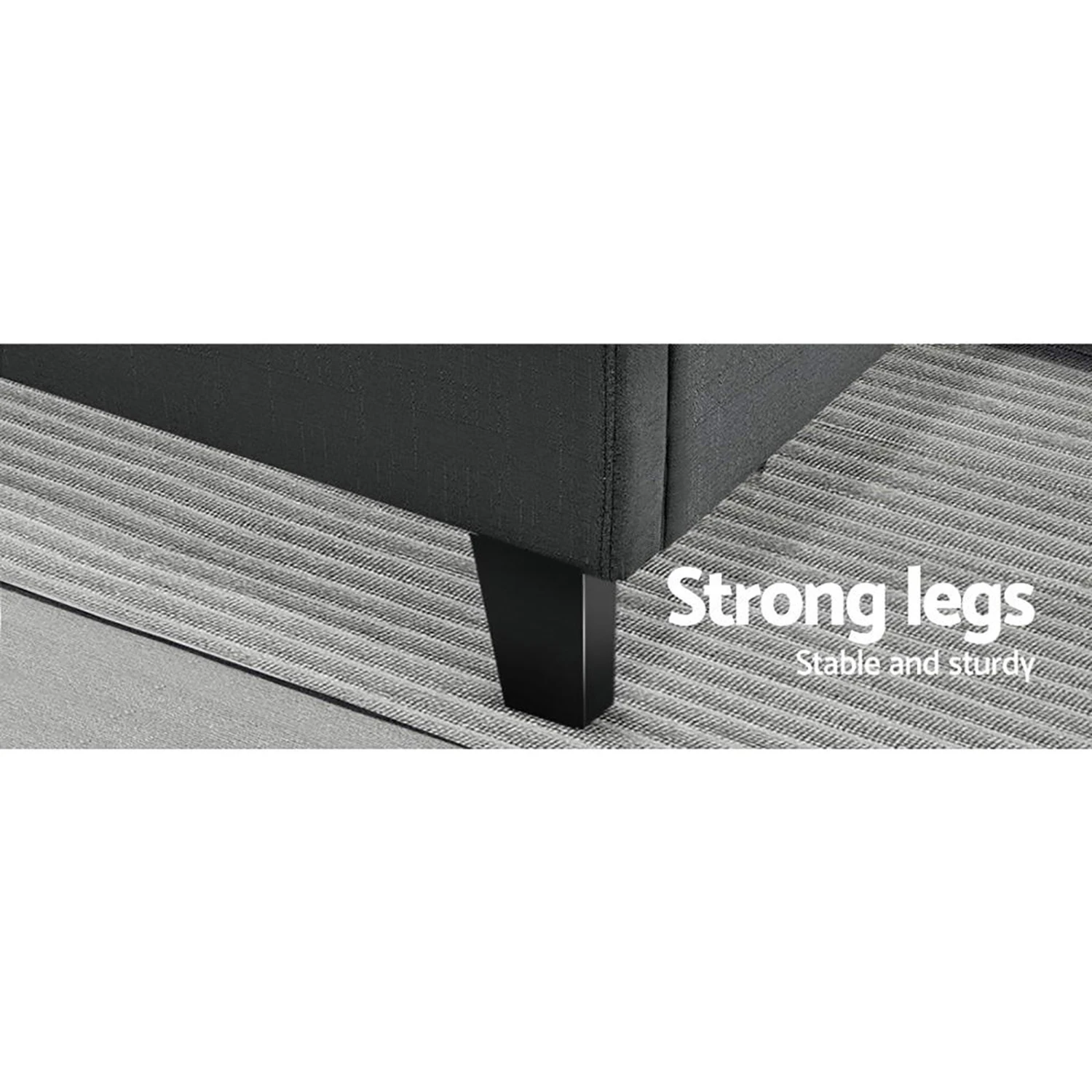 With its exquisite modern lines, elegant finish and quality faux linen fabric upholstery, the bed frame is well-crafted with solid wooden slats that help distribute body weight evenly throughout the ensemble.