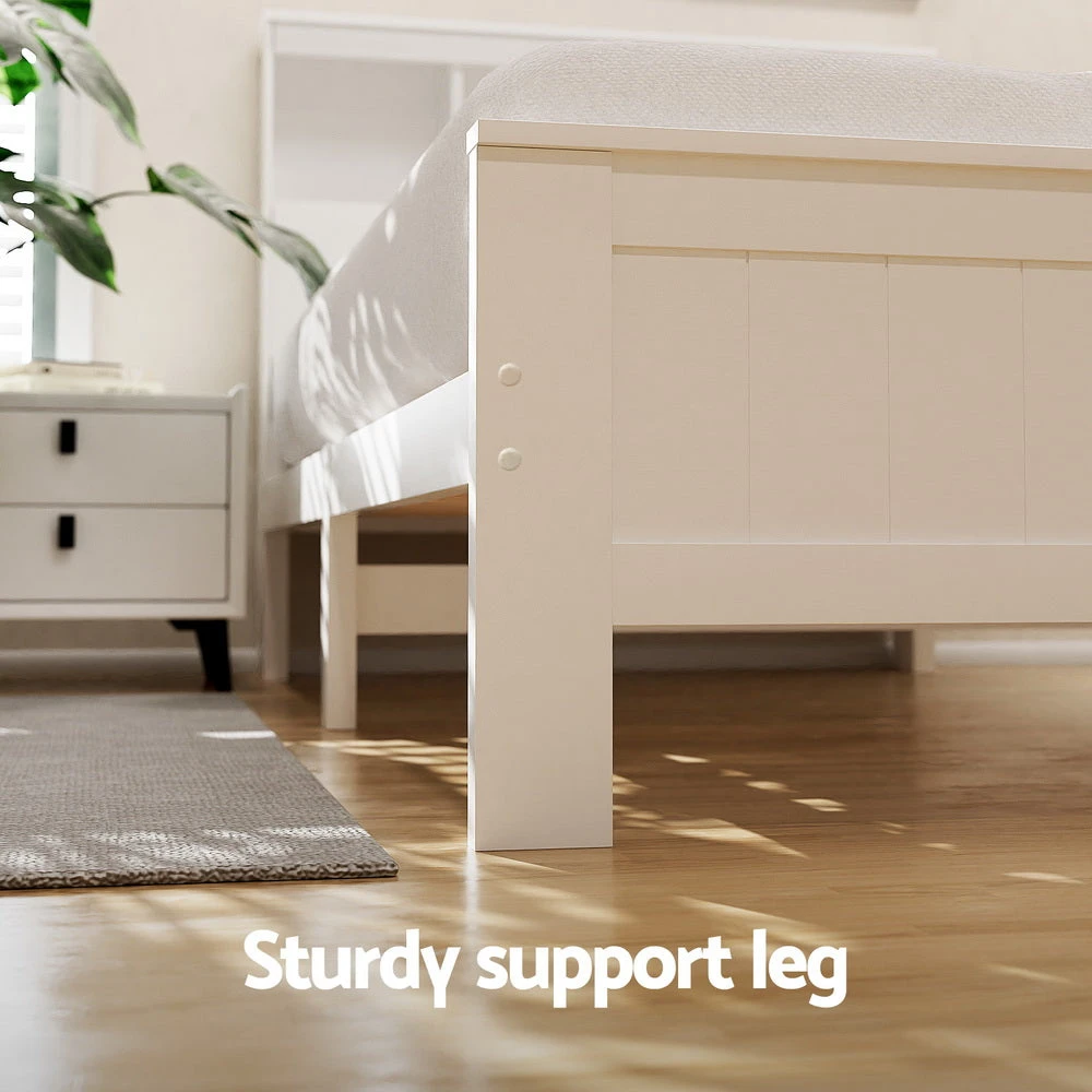 The Conqueror is a sturdy, stylish king single bed frame designed to keep up with busy kids and cluttered bedrooms. Made from solid pine wood and finished in a smooth, non-toxic white paint, it’s as durable as it is charming — perfect for growing kids or even compact adult spaces.