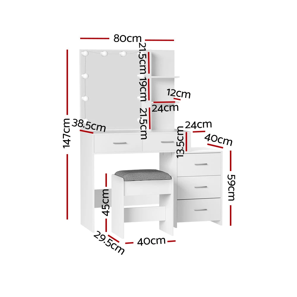 Indulge in the glamour of Hollywood right from your own space with the Dale Dressing Table. Imbued with generous storage and convenient features, this beauty haven promises to make your daily routine a seamless and delightful experience. Crafted from high-quality particleboard with a pristine white melamine finish, the table is not only a vision of elegance but also built to withstand the test of time.