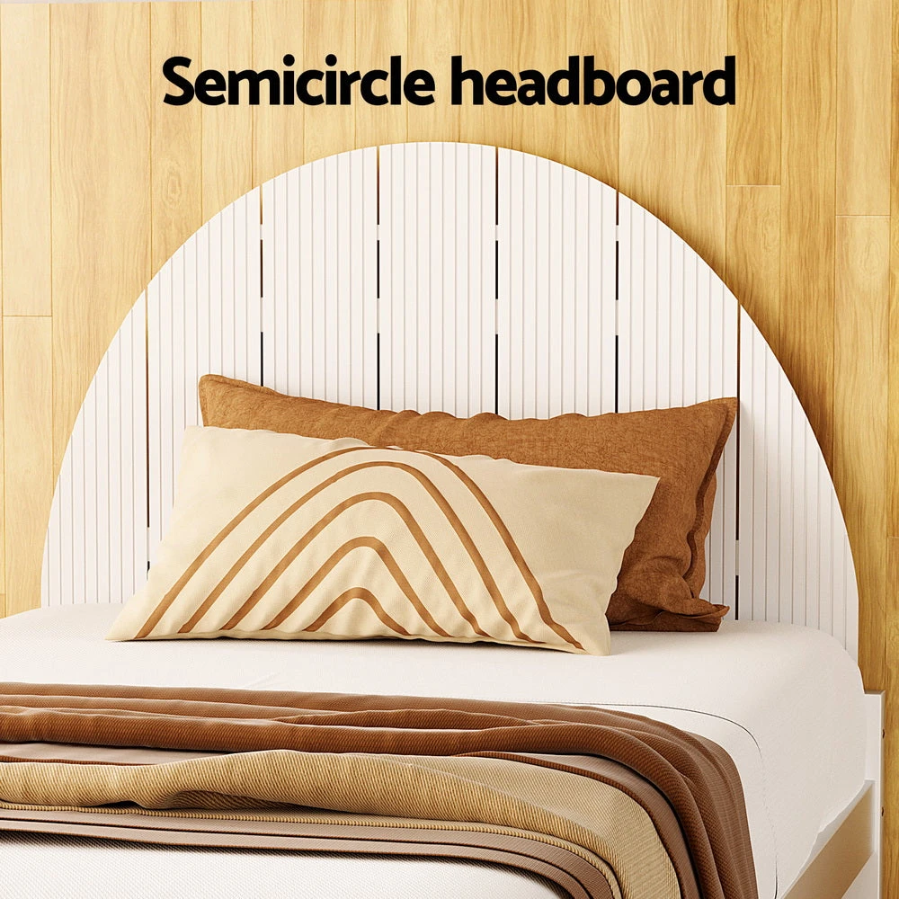Elevate your bedroom with the sophisticated and stylish Daly King Single Wooden Bed Frame, featuring a unique semicircular headboard and a sleek white finish. Crafted from solid pinewood, this bed frame promises durability, stability, and timeless elegance.
