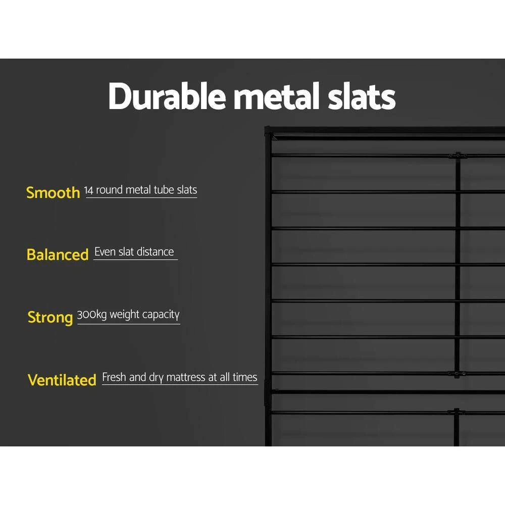 Simple in design, the bed frame is meticulously constructed in sturdy steel and 15mm thick MDF with PVC for durability and strength. The sleek black powder-coated steel and dark wood accents lend real industrial credit to your bedroom for some standout décor.