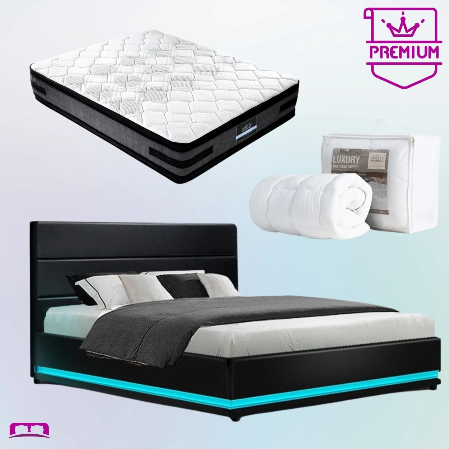 Premium LED Double Bed, Reversible Mattress & Topper Bundle (Black)