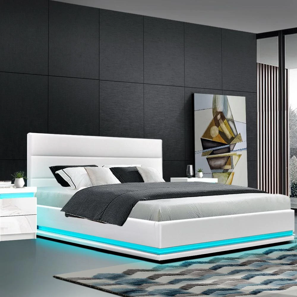 1 x Henley LED Gas-Lift Storage Bed Frame (White, Double)