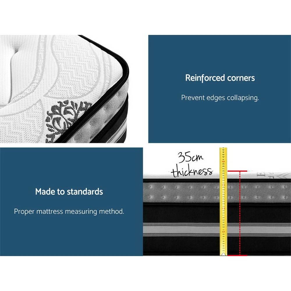 Pamper yourself with our Giselle Bedding Galaxy Series Euro Top Mattress that will give you a soothing sleep night after night. Built upon layers of quality materials, the 35cm thick mattress is a testament to fine craftsmanship and innovative sleep technology. You will find everything you desire for a mattress. Ultra-comfort with its soft and smooth Belgium knitted fabric. Comprehensive support from its genuine 7-zone EvenZon pocket springs system with zero partner disturbance. Quick recovery and rebound with its high-density foam. Temperature control from the gel-infused egg-shaped foam that keeps you cool and ventilated throughout the night. Our mattress delivers all the above with a level of comfort that surpasses expectations and a medium firmness that many Australians love. Not least, the mattress is hygienically constructed to free your body from allergens and dust mites. Better sleep is not just a dream. It is a reality with our luxurious Euro Top mattress.
