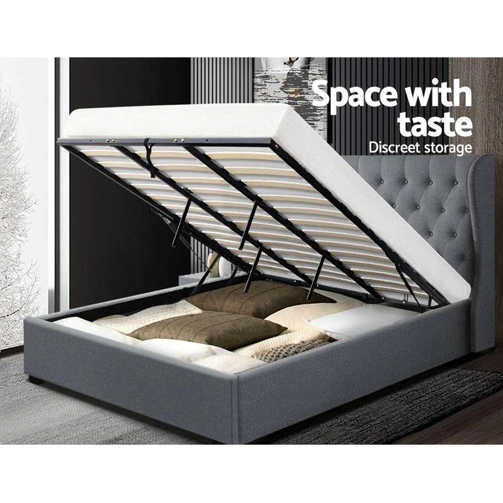 1 x Elouera Gas Lift King Bed Frame with Storage (Grey)