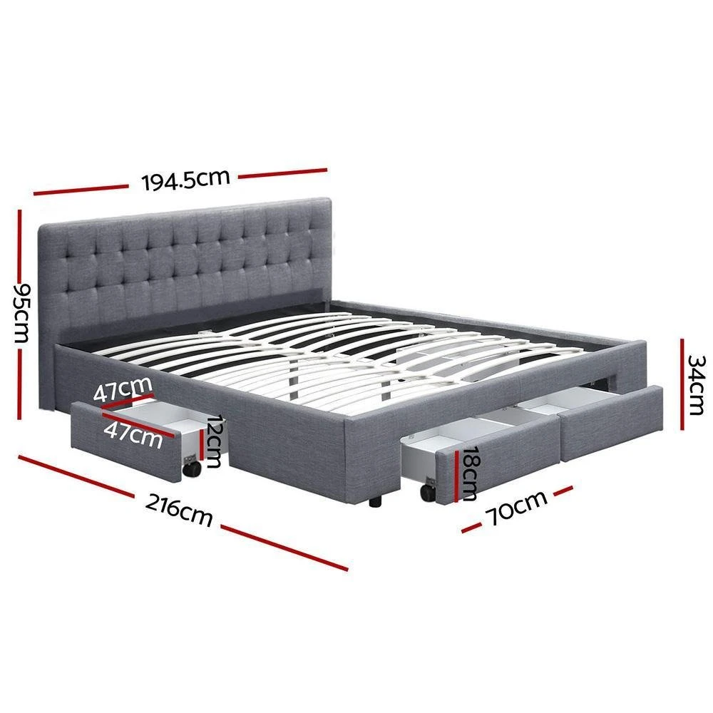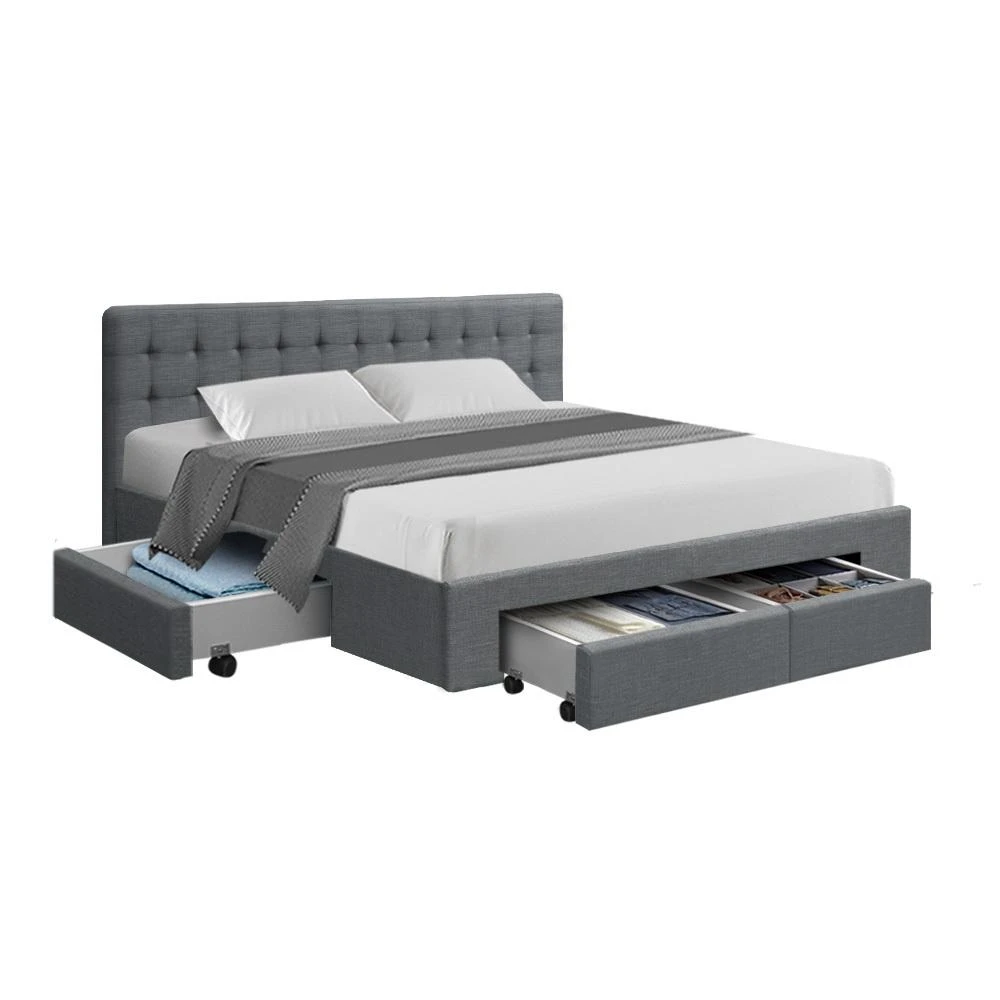 1 x Trinity King Bed Frame (Grey with Storage Drawers)