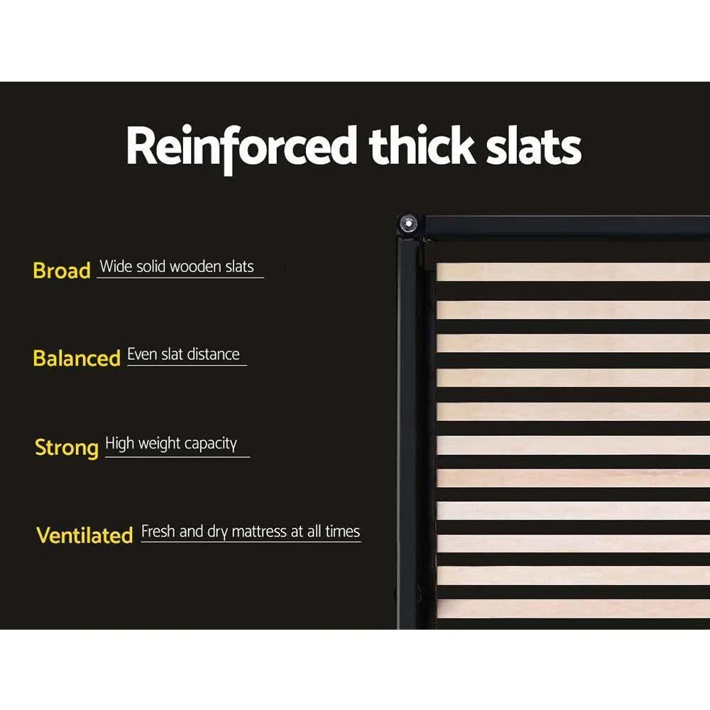 The wooden arched slat base is also designed to flex appropriately so that it can better distribute the weight exerted on it. Overall, the bed frame is well-built with reinforced steel bars within its sturdy steel frame.