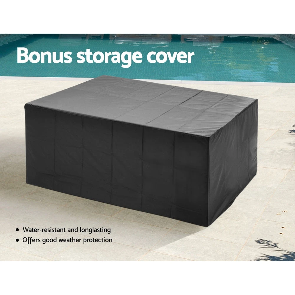 Looking to create a chic and gorgeous outdoor dining setting? The Gardeon 10-seater wicker outdoor dining set is a must purchase. It will liven up your outdoor space and help you achieve an elegant space where you can enjoy day and night and summer and winter. This 11-piece set comprises of six chairs, four ottomans, and a large table. It boasts an integrated design that helps save space. The ottomans can be pushed under the chairs when not needed. All the seat and back cushions come with thick, high-density soft padding that ensures your comfort always. Additionally, the removable cushion covers are water-resistant to suit different seasons. Furthermore, our outdoor set features a lovely wicker weave for a touch of tropical charm, and the UV-resistant PE wicker with weather-resistant steel frame is suitable for all-season use. The large table with thick tempered glass top, durable frame, and stable cross construction ensures strength, durability, and stability. This set also comes with a bonus water-resistant storage cover that offer protection from all seasons. Our wicker outdoor dining set will withstand the test of time. You can create a praise-worthy spot with just a little creativity that will wow your guests. Shop it for your home today.