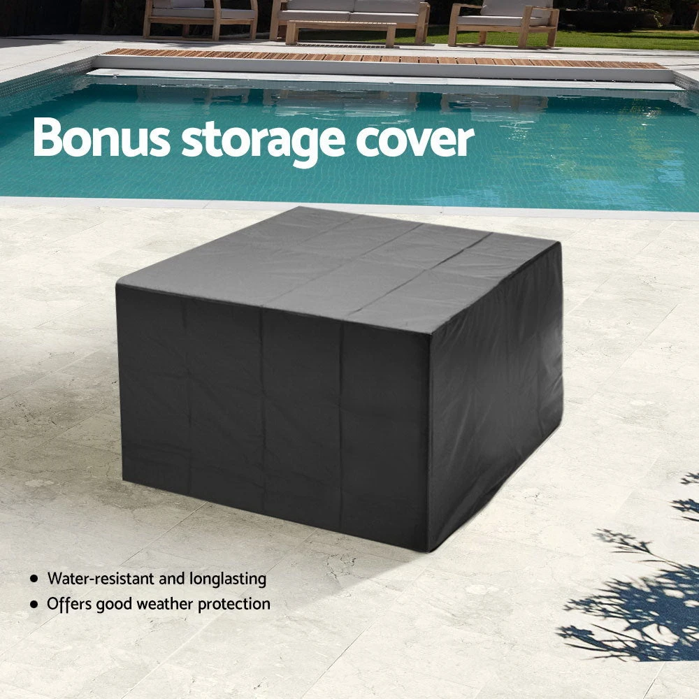 Looking to create a chic and gorgeous outdoor dining setting? The Gardeon 8-seater wicker outdoor dining set is a must purchase. It will liven up your outdoor space and help you achieve an elegant space where you can enjoy day and night and summer and winter. This 9-piece set comprises of four chairs, four ottomans, and a large table. It boasts an integrated design that helps save space. The ottomans can be pushed under the chairs when not needed. All the seat and back cushions come with thick, high-density soft padding that ensures your comfort always. Additionally, the removable cushion covers are water-resistant to suit different seasons. Furthermore, our outdoor set features a lovely wicker weave for a touch of tropical charm, and the UV-resistant PE wicker with weather-resistant steel frame is suitable for all-season use. The large table with thick tempered glass top, durable frame, and stable cross construction ensures strength, durability, and stability. This set also comes with a bonus water-resistant storage cover that offer protection from all seasons. Our wicker outdoor dining set will withstand the test of time. You can create a praise-worthy spot with just a little creativity that will wow your guests. Shop it for your home today.