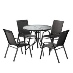 5-Piece Outdoor Dining Set WithTable & Stackable Chairs – Black
