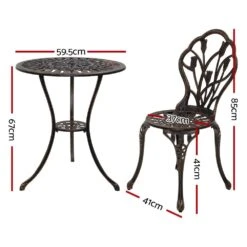 3PC Outdoor Setting Bistro Set Chairs Table Cast Aluminum Patio Furniture Tulip Bronze