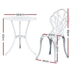3PC Outdoor Setting Bistro Set Chairs Table Cast Aluminum Patio Furniture Tulip White