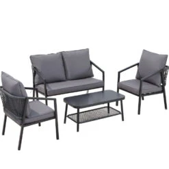 4-Piece Outdoor Sofa Set With Table – Black With Grey Cushions