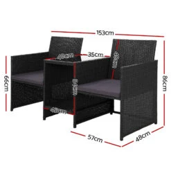 Outdoor Setting Wicker Loveseat Birstro Set Patio Garden Furniture Black