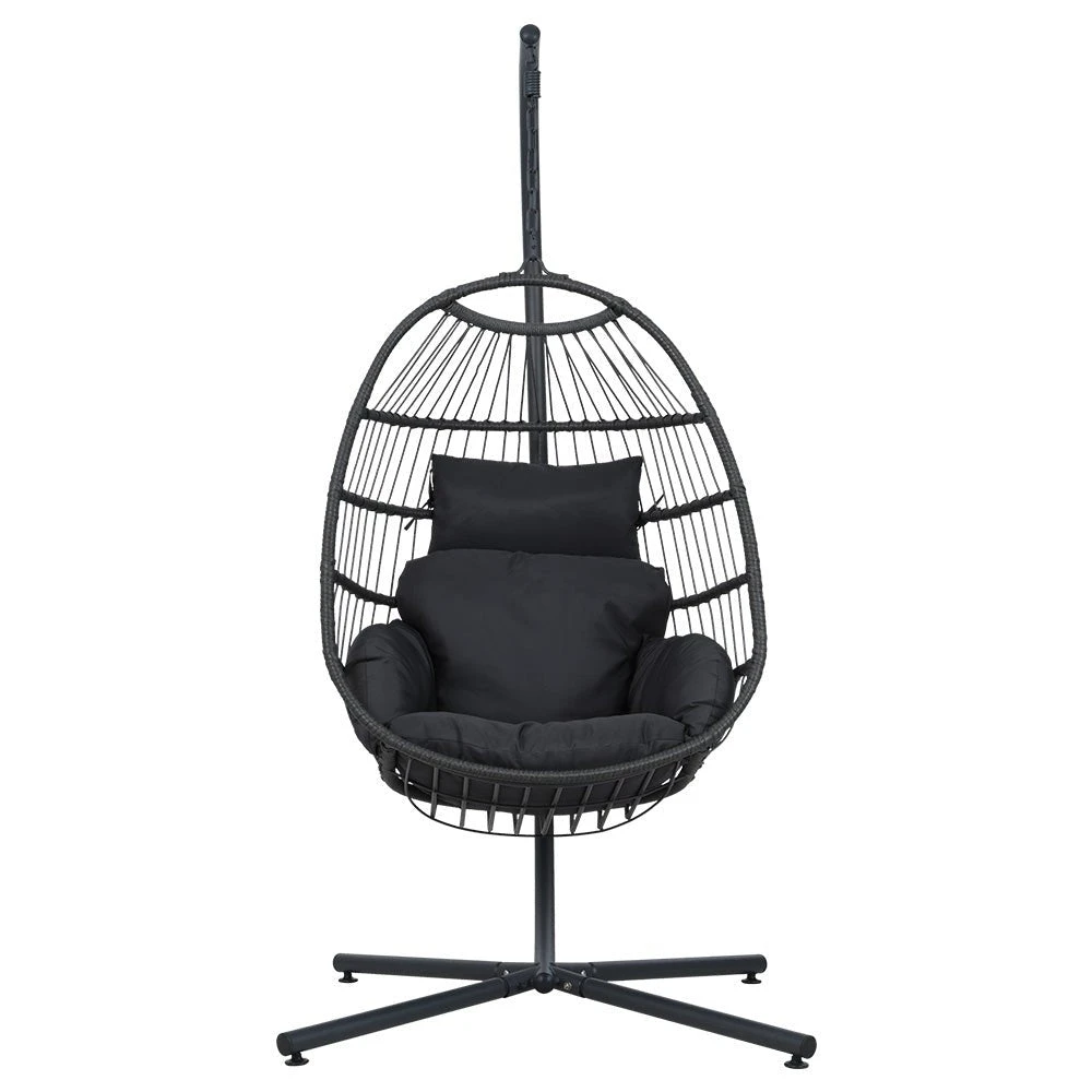 Soak up the sun as you lay lazily in the hanging pod chair. Perfect for indoors and outdoors, this chair features an intricate pattern of resin wicker that makes a great addition to your boho-inspired space. It will add a jovial vibe with its light and airy look, and the comfortable egg-shaped design with plush cushions will help you relax and unwind.