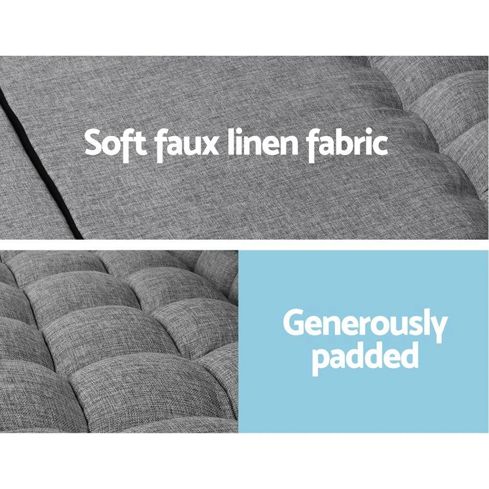 Made of heavy-duty steel and upholstered in a skin-soft faux linen fabric, the lounge sofa bed is generously padded with a high resilience foam that is durable and lasting. Not least, the lounge sofa bed can be separated into four pieces for easy storage. The zipped covers are also removal for hassle-free cleaning.
