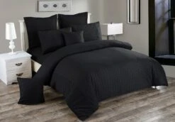 Soft Microfibre Embroidered Stripe Sheet Set King White Pillowcase Blue Stripe