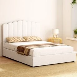Double Package | Dorilla Gas Lift Storage Bed Frame Beige & Bonita Pillow Top Mattress (Medium Firm)