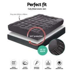 King Mattress Topper Pillowtop 1000GSM Charcoal Microfibre Bamboo Fibre Filling Protector