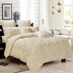 Diamond Pintuck Queen Size Quilt/Doona/Duvet Cover Set – Beige