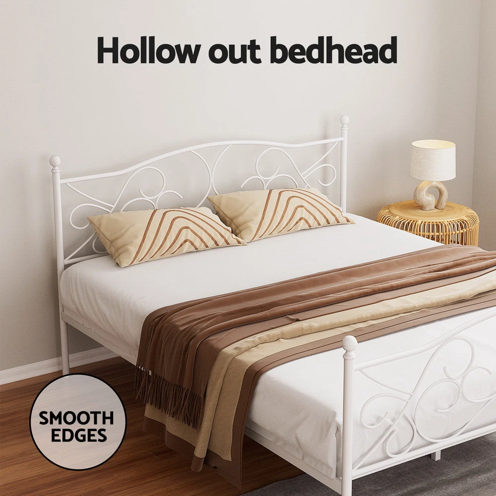 The stunning hollow-out headboard and footboard design add a touch of vintage charm, making this bed an elegant centrepiece in any bedroom. Plus, with 28cm of under-bed clearance, you’ll have ample space to store trundle drawers, extra bedding, or other bedroom essentials—helping you keep your space tidy and organised.