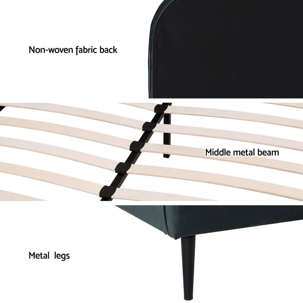1 x Daintree Velvet Bed Frame Dark Green – Queen