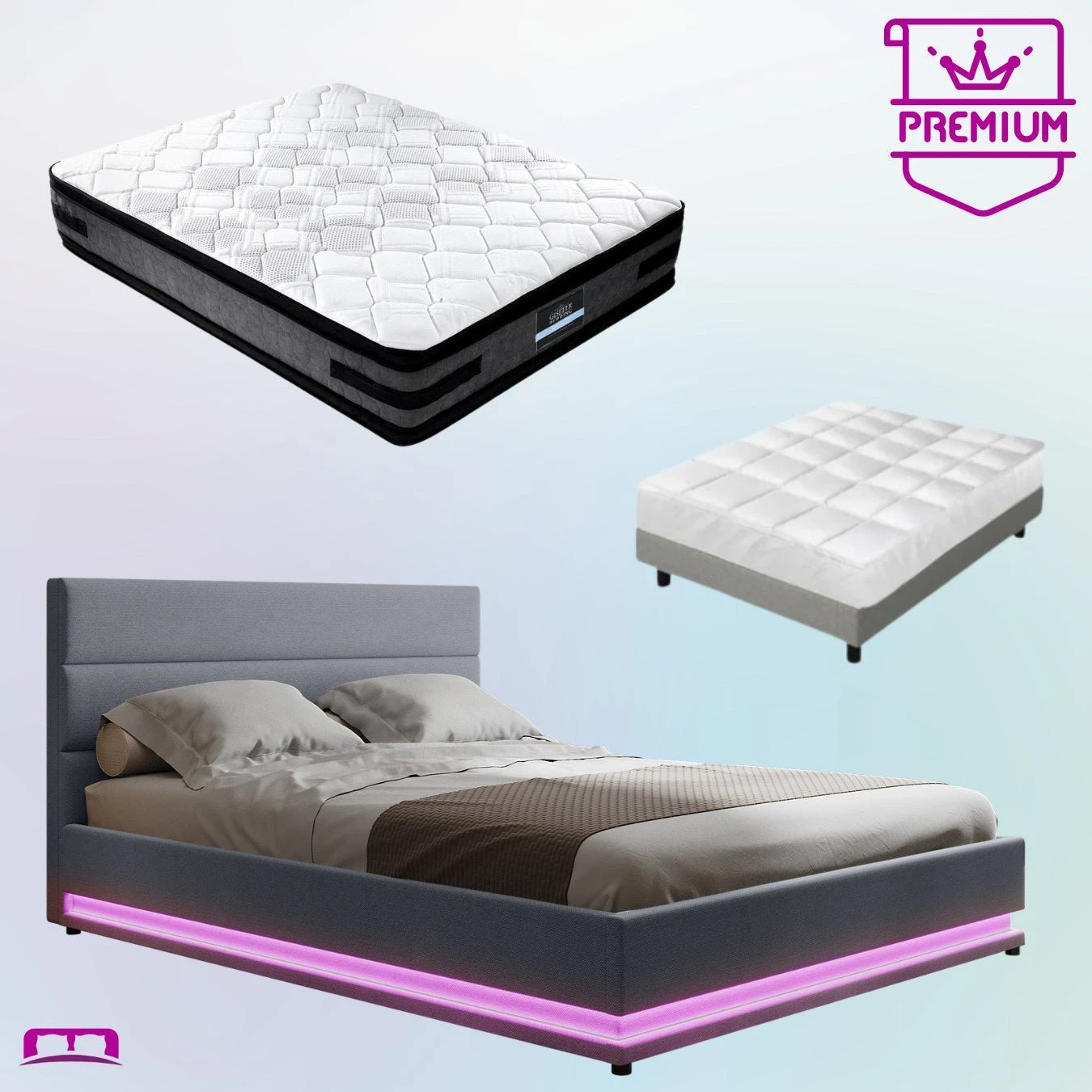 Premium Queen LED Bed, Pillow Top Mattress & Deluxe Mattress Topper Bundle
