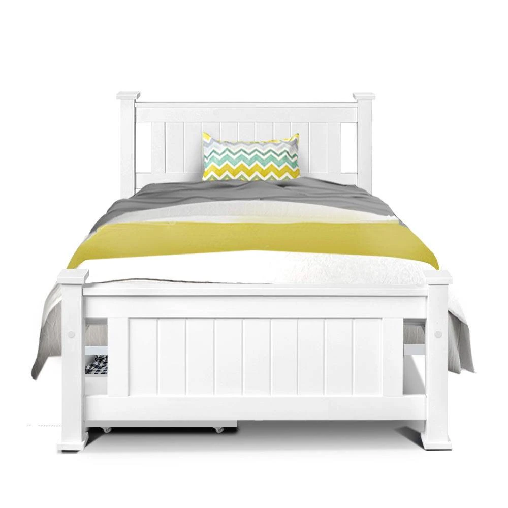 Finished in a non-toxic, eco-friendly white paint, the neutral coloured bed frame makes for easy decoration coordination with any bedroom. The bed frame becomes an instant storage area with acres of space for your bedding essentials.