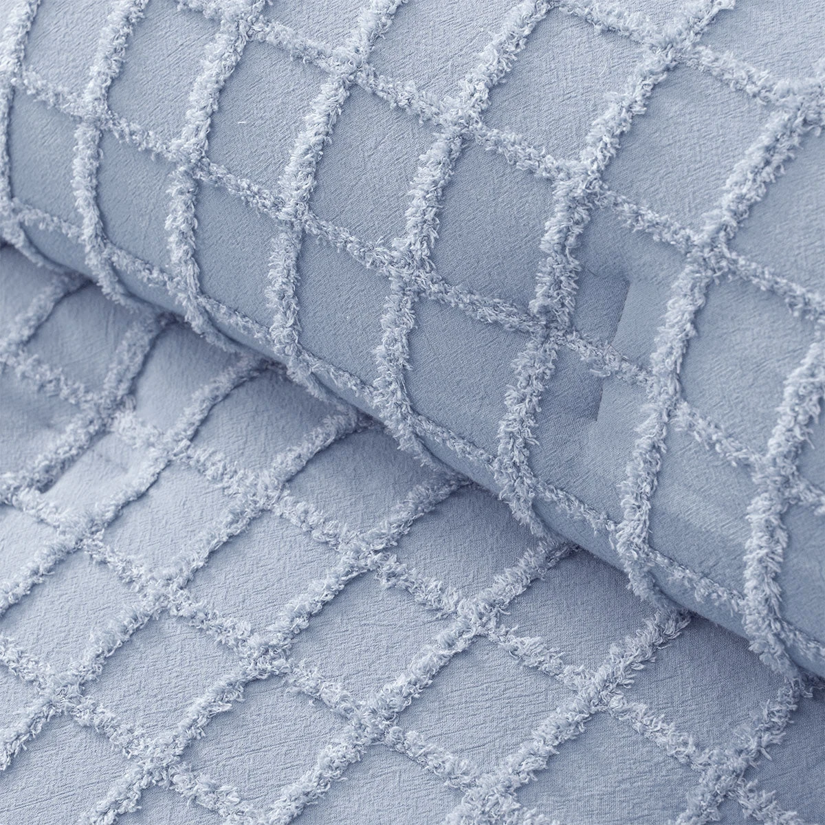 Change the look of your bedroom by adding some texture with the 3 Pcs Parquet Snooze Blue Comforter Set by Vintage Design Homewares. This comforter set is made from 100% cotton cover with 100% Polyester filling, keeping you comfortable all night long. Our design features chenille grid pattern running down the comforter and pillowcases adding that chic, minimalist style.