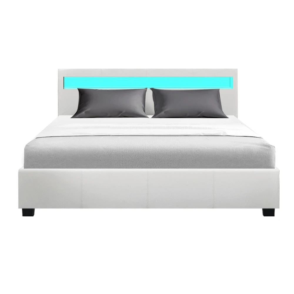 1 x Wanda Gas Lift LED Bed Frame (Queen – White)